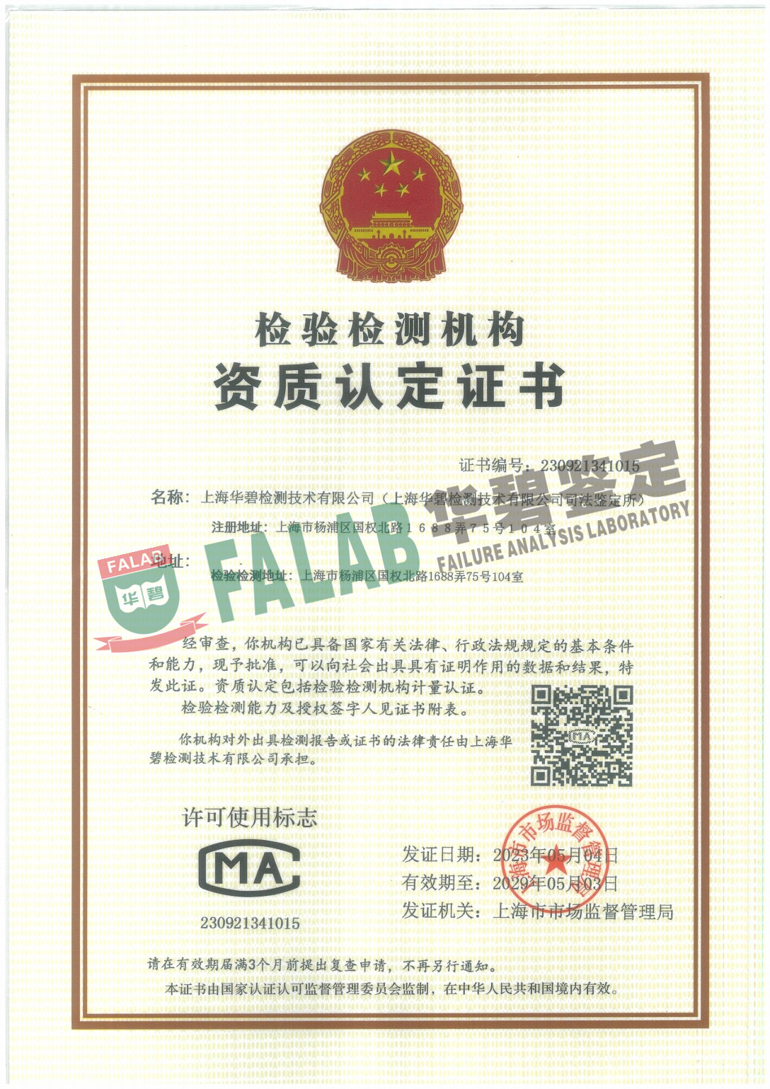 Position: Home / About FALAB / Enterprise Qualification