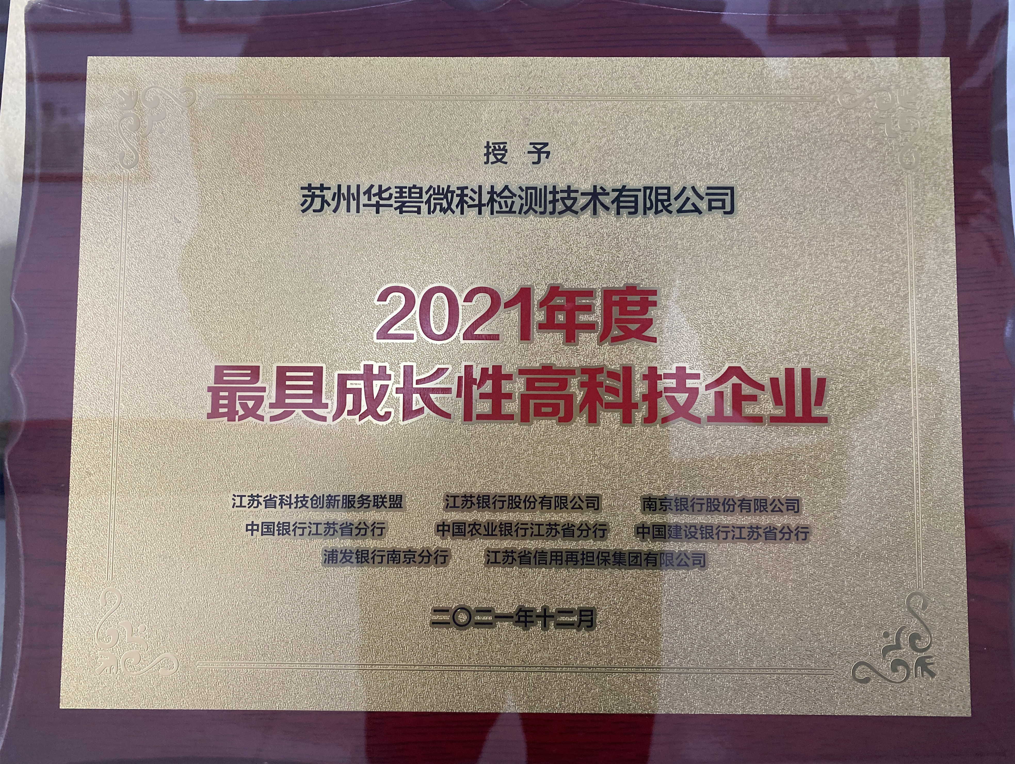 近日,江蘇省2021年度“* 具成長性高科技企業”名單公布,蘇州華碧微科檢測技術有限公司憑借深耕科技領域多年所積累的綜合實力成功上榜。此次評選為2021年度江蘇省* 具成長性高科企業,標志著蘇州華碧微科檢測技術有限公司在科技研發工作方面邁上一個新的起點和高度。